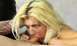 Lots of whores come to our studio telling us how much they love to eat cum. Few actually do. Holly actually does. She enjoyed having a big cock in her mouth, sucking all the ball juice from Gio's man meat. She's not so hot at giving a "porn star" blowjob, but she is good at draining balls. Who knows... maybe with a little cock coaching, she can get better... but probably not.